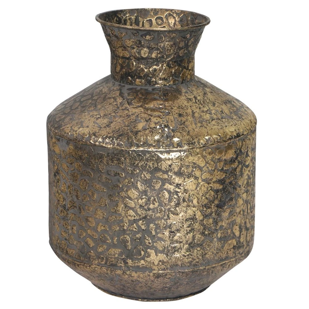 Een vaas kopen kan misschien lastig zijn, maar met deze Metalen vaas witgoud D 26,5 x H 34 cm zit het helemaal goed! De vaas past zowel in een landelijk als industrieel interieur en met bloemen geeft het net even wat meer sfeer en kleur in huis. Meer fan van droogbloemen of andere decoratieve takken? Ook die passen perfect in deze metalen vaas! De vaas is in diverse afmetingen bij ons verkrijgbaar. Combineer dus diverse vazen uit deze serie met elkaar voor een mooi en sfeervol effect in elk interieur.